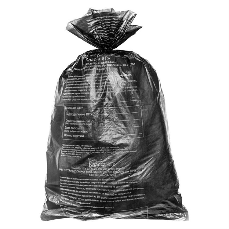 Пакет для утилизации мед. отходов, 18 мкм, 10 л, 330*600 мм (класс Г) в рулоне 50 штук
