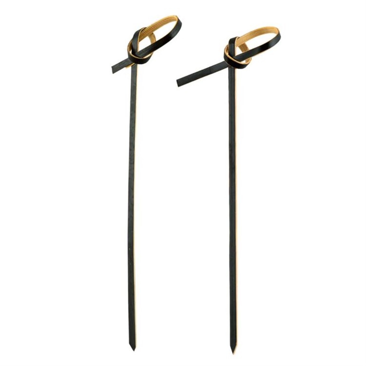 Черные шпажки для канапе «Узелки» выполнены из бамбука. Они подходят для приготовления коктейлей, миниатюрных бутербродов, а также для оформления сырных, мясных и фруктовых закусок.