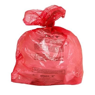 Пакет для утилизации мед. отходов, 18 мкм, 60 л., 700*800 мм. (класс В) в рулоне 50 штук