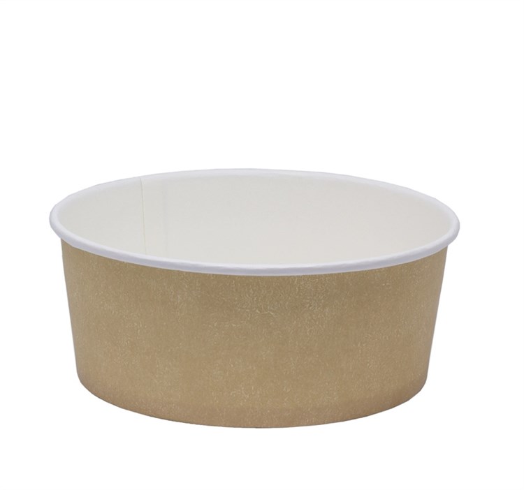 - Бумажный контейнер из крафт-бумаги круглой формы с объемом 750 мл предназначен для хранения, подачи на стол или транспортировки готовых блюд.