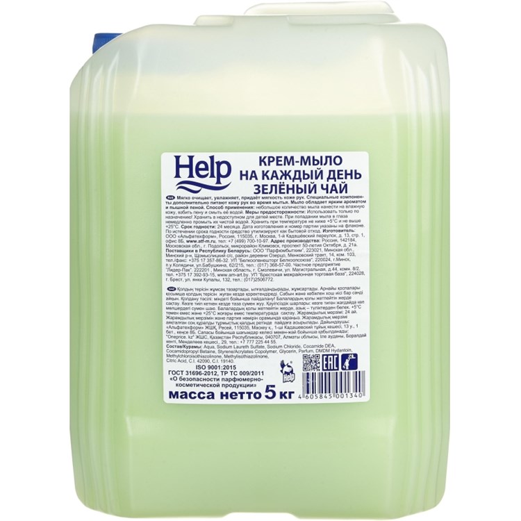 Крем-мыло «Help» с ароматом зелёного чая, 5 кг. Благодаря мягким и деликатным компонентам, оно бережно очищает кожу рук и тела, не вызывая сухости.