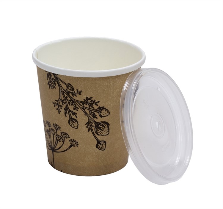 Круглый бумажный контейнер для супа, 440 мл, d=98 мм, Ботаника