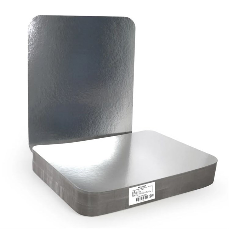 Крышки 402-721, изготовленные на картонной основе и покрытые металлическим слоем, предназначены для алюминиевых форм с L-образным краем размером 318 х 251 мм, производство "ГОРНИЦА". Плотное прилегание крышек к форме и отражательные свойства алюминия помогают сохранить свежесть продуктов и поддерживать их температуру. Крышки позволяют штабелировать контейнеры для удобства хранения и транспортировки. Она совместима с алюминиевой формой 402-680.
