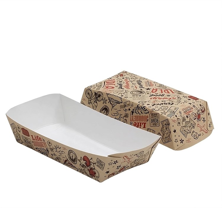 Одноразовый бумажный лоток для хот-дога — это оптимальное решение для организации питания на свежем воздухе или в фуд-корте. Изделия из плотного пищевого картона поставляются в собранном виде и занимают минимум места при хранении. Такие лотки специально разработаны для подачи знаменитой булочки с сосиской, а для длинных вариантов имеют перфорацию по краям. Они также часто используются для закусок на дегустациях, презентациях и фуршетах, где в них эффектно смотрятся канапе на шпажках и фруктовые или овощные нарезки. Конструкция лотков легкая и удобная, их легко держать в руке и есть на весу. По сравнению с лотками с крышками, они имеют более низкую стоимость за штуку.