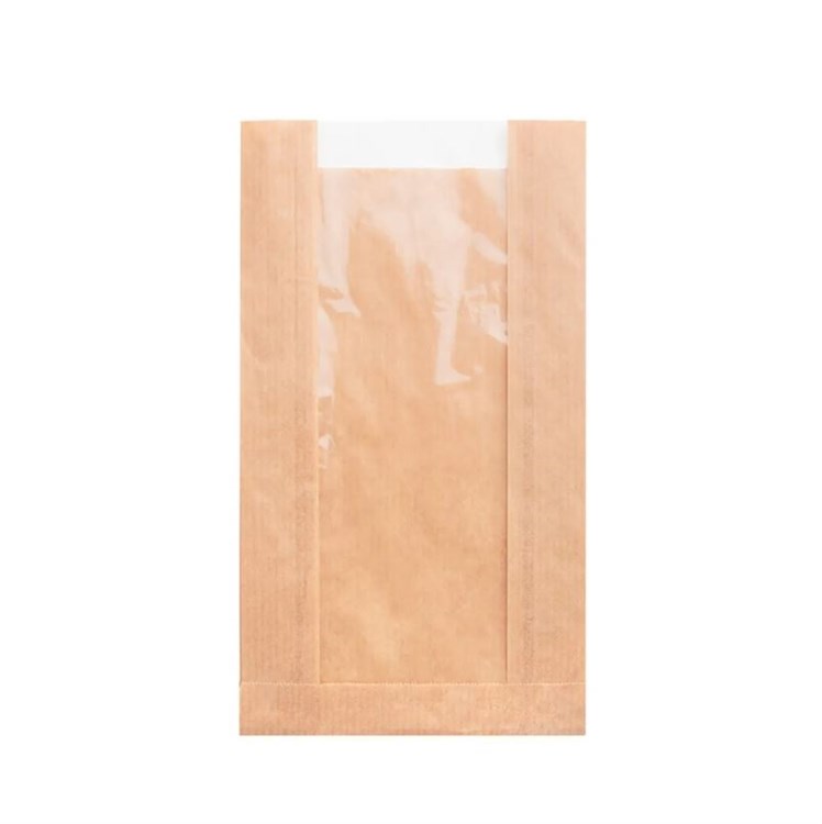 Пакет бумажный с окном под ВЫПЕЧКУ, 250 х 140 + 60 мм, крафт, коричневый, AVIORA, 100 шт/уп