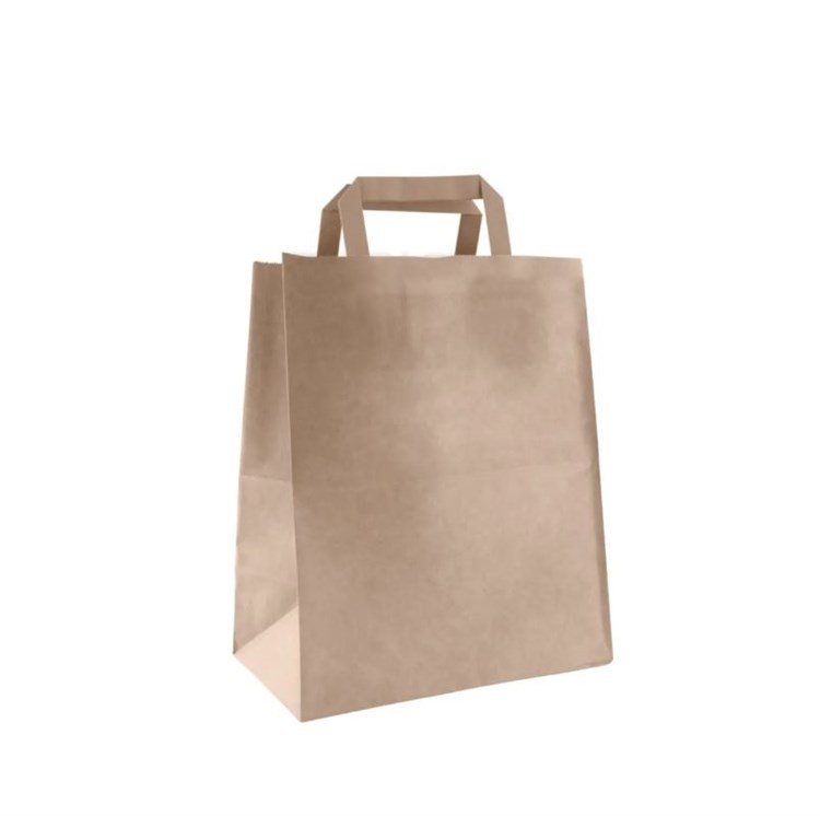 Пакет бумажный с плоскими ручками, крафт, из первичного сырья, 240 х 140 х 280 мм, AVIORA. Пакеты с плоскими ручками отлично подойдут для упаковки пищевых продуктов и прочих бытовых товаров.