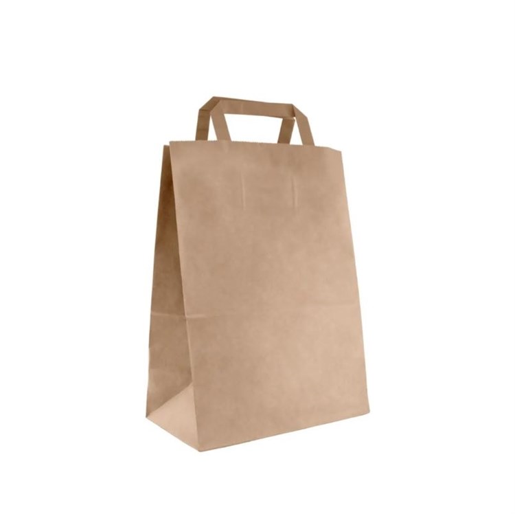 Пакет бумажный с плоскими ручками, крафт, из первичного сырья, 280 х 150 х 320 мм, AVIORA. Пакеты с плоскими ручками отлично подойдут для упаковки пищевых продуктов и прочих бытовых товаров.