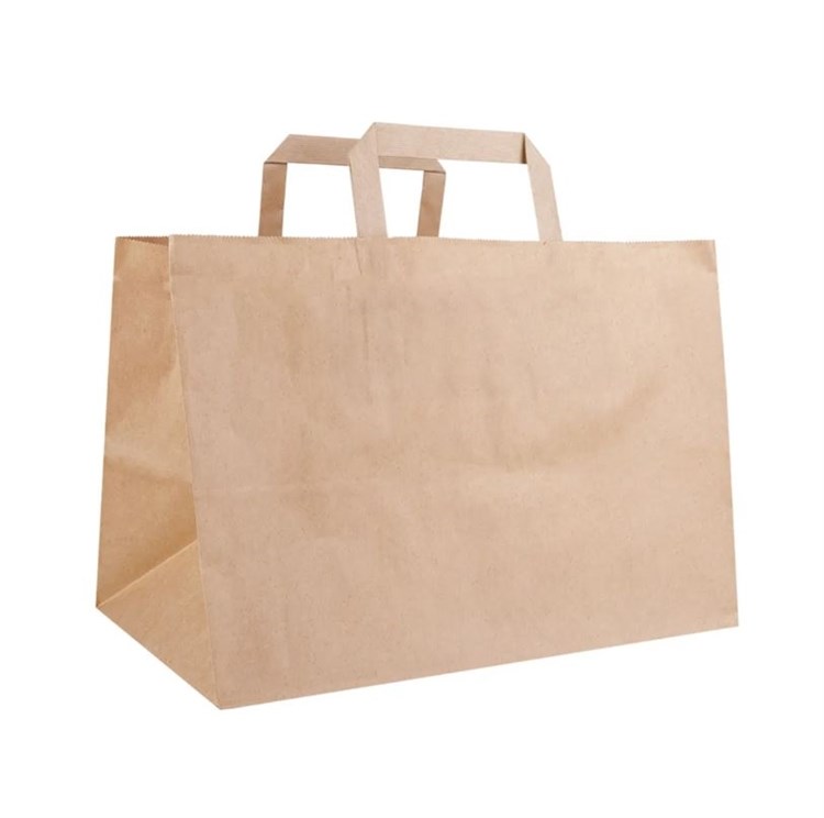 Пакет бумажный с плоскими ручками, крафт, из первичного сырья, 320 х 200 х 220 мм, AVIORA. Пакеты с плоскими ручками отлично подойдут для упаковки пищевых продуктов и прочих бытовых товаров.