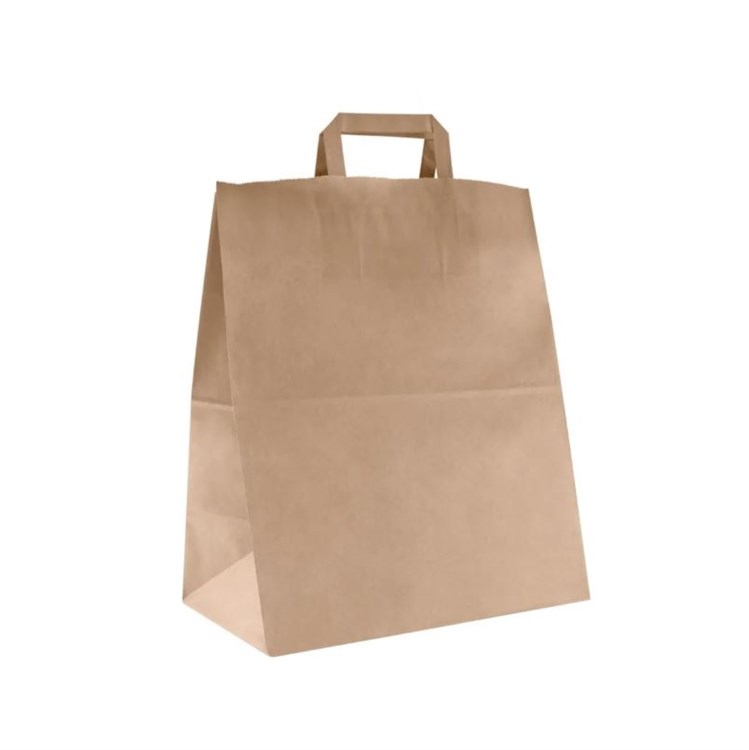 Пакет бумажный с плоскими ручками, крафт, из первичного сырья, 320 х 200 х 370 мм, AVIORA. Пакеты с плоскими ручками отлично подойдут для упаковки пищевых продуктов и прочих бытовых товаров.