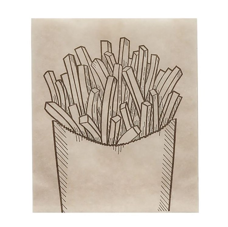 Пакет бумажный с рисунком "КАРТОШКА ФРИ", 115 x 100 + 30 мм, подпергамент жиропрочный, коричневый, AVIORA, 100 шт/уп