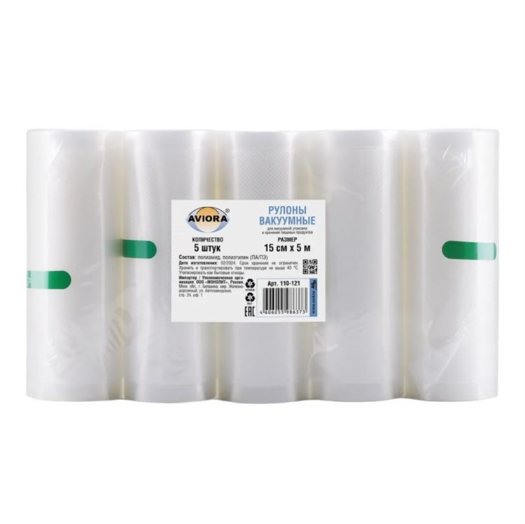 Рулоны вакуумные AVIORA, 150 х 5000 мм, 5 шт/уп. Рулон представляет собой рукав длиной 5 метров, запаянный по бокам