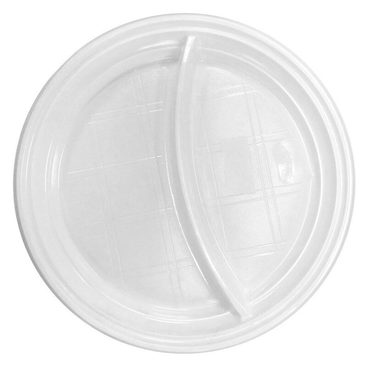 Тарелка одноразовая столовая, PS d=205 мм Белая, 2 секции, АТЛАС (10шт./упаковка)