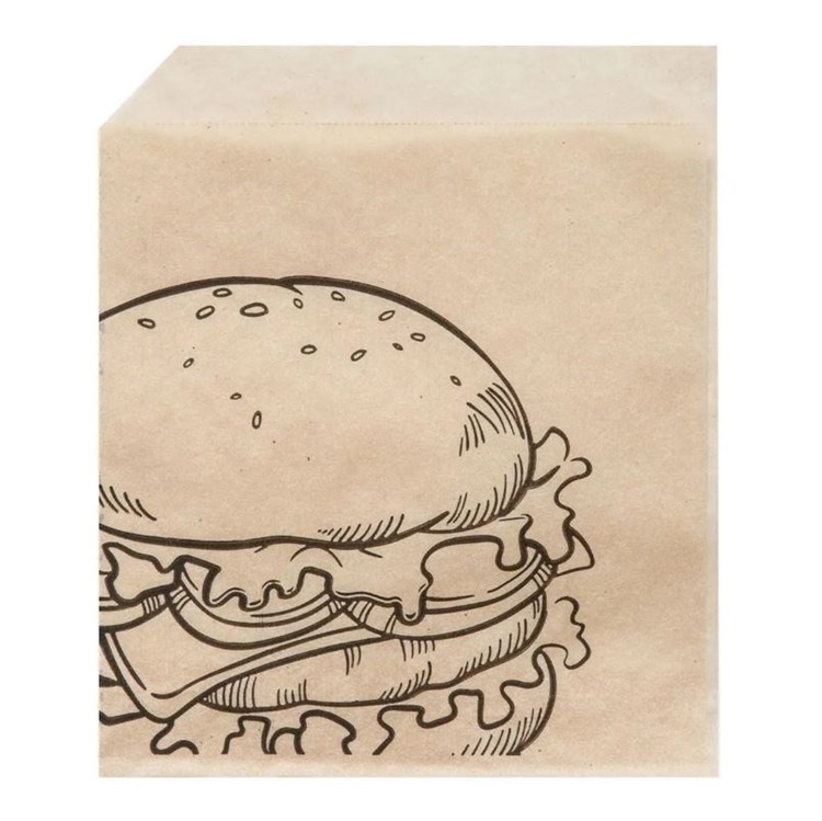 Уголок бумажный с рисунком "БУРГЕР", 175 x 140 мм, подпергамент жиропрочный, коричневый, AVIORA, 100 шт/уп. Подходит для бургера, сэндвича.